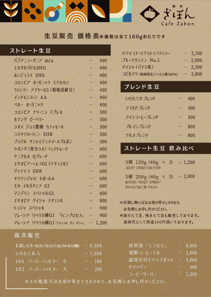 生豆や器具の販売も行っておりますので、お気軽にご相談ください。